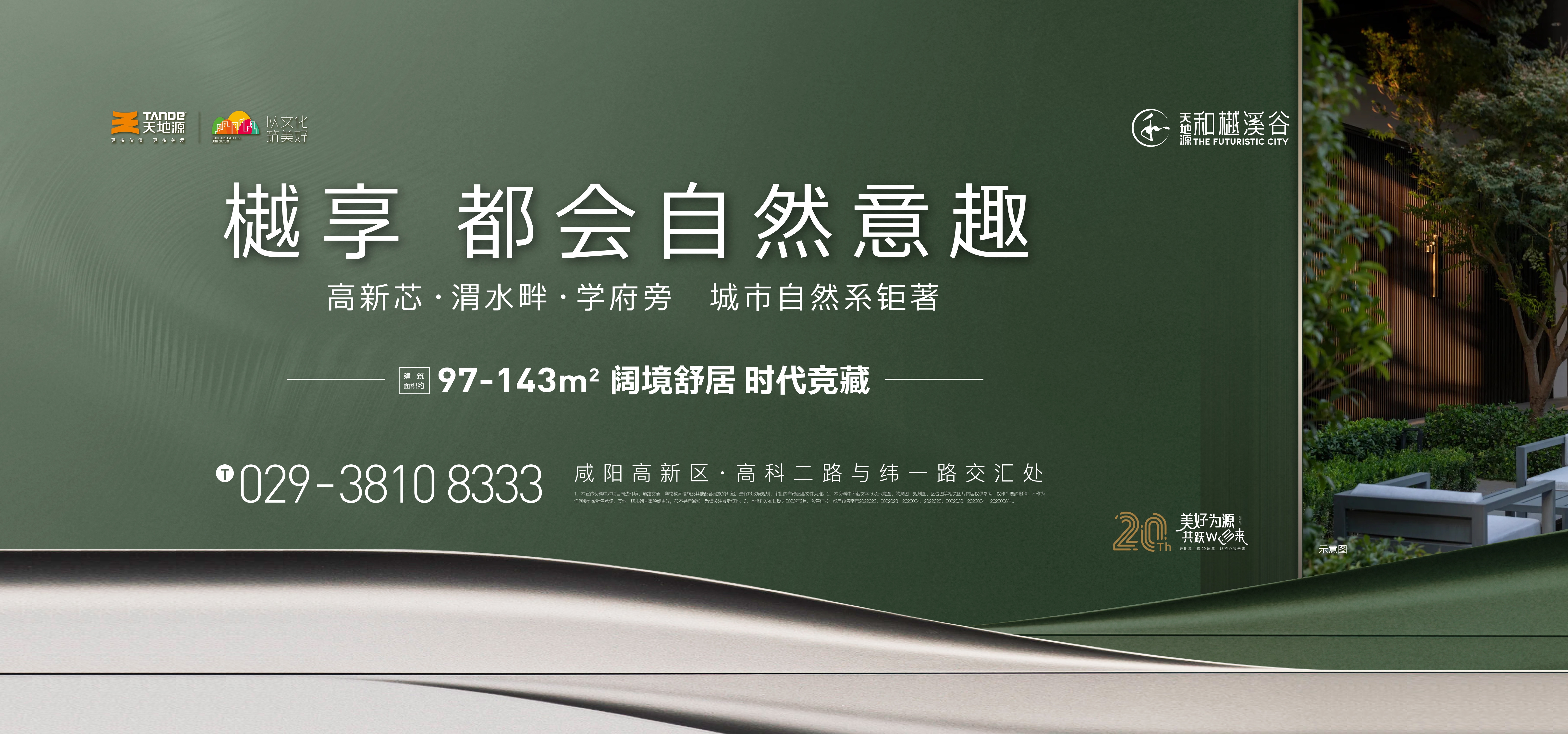 天地源·和樾溪谷,位于咸陽市高新區,西興高速南側,高科二路與緯一路東南交匯處,位于咸陽市高新區電子科技產業園區內,渭河北岸的產業核心腹地,臨近咸陽市高新區管委會,處于高新區“一城”、“五園” 空間布局構成中。項目總占地面積77484.14平方...